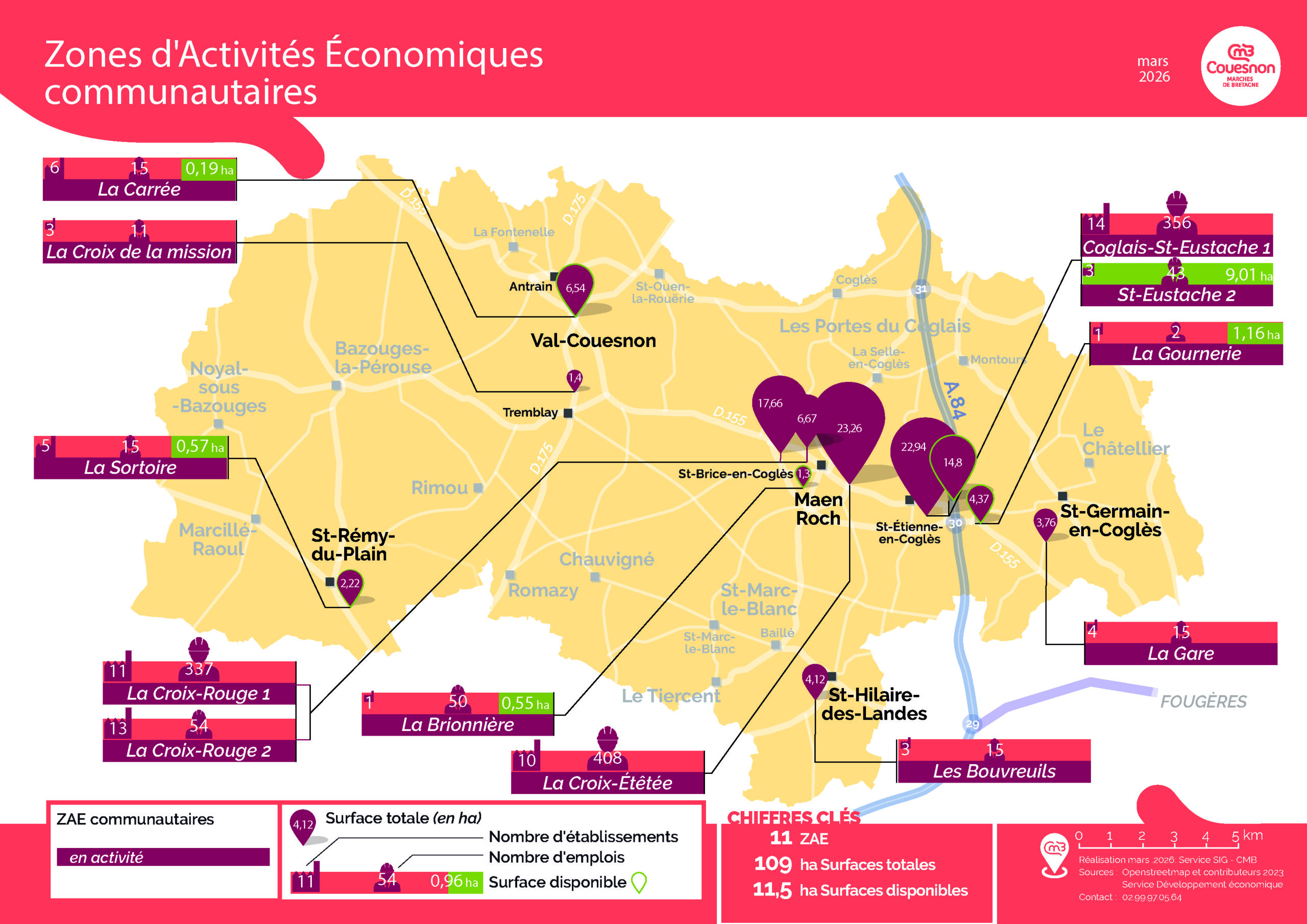 Vous avez un projet de création d’entreprise ? Couesnon Marches de Bretagne propose de nombreuses opportunités via ses parcs d’activités et met à disposition un réseau de locaux disponibles sur le territoire.